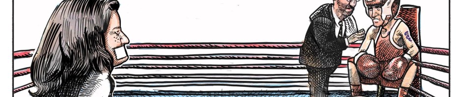 The target is not Jody Wilson-Raybould or, more relevant to the furor, violence against women. Trudeau is attacking Minister Wilson-Raybould’s reputation in real life. He implies that she must have misunderstood, while he deigns to speak for her. The reputational violence is a secondary target, and is also skewered. The restraint on speaking may be legal and not physical, but it is a gag. Her hands are tied, and it is within Trudeau’s power alone to untie her, to allow her to speak. Trudeau’s chief advisor, Gerry Butts, is “in his corner” urging Trudeau to keep beating her up. The comic is not offensive, grotesque or obscene. Trudeau’s behaviour is though, and that is the point. Frankly, I think the comic is brilliant.